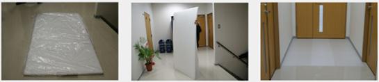 在墙壁、门、门框上也粘贴养护板。