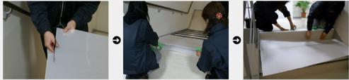 楼梯养护板/中空板的粘贴方法如下图所示: